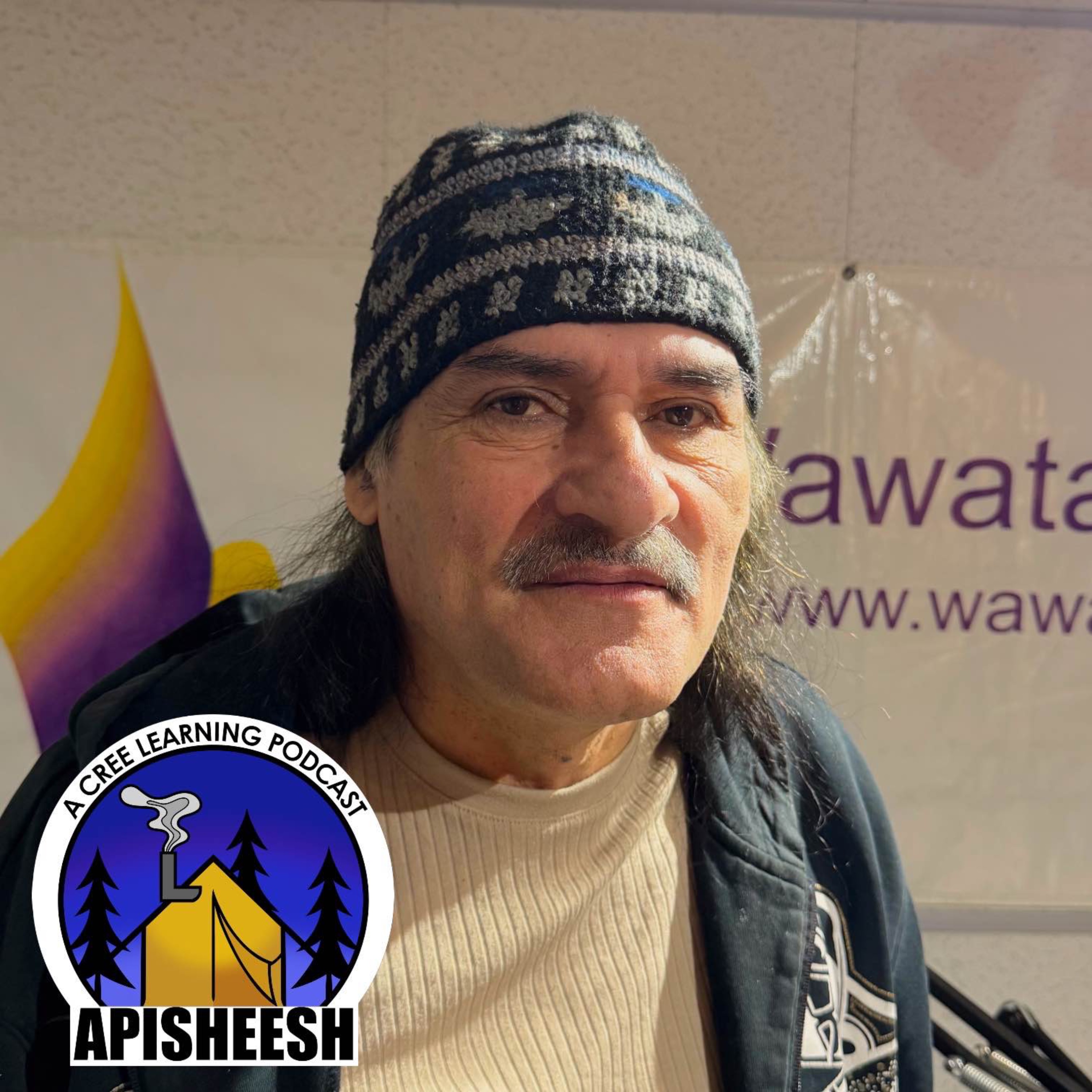 Apisheesh is a monthly interview podcast where Omushkego (Swampy Cree) host Lenny Carpenter shares his journey to learn his Cree language through interviews with fluent speakers and other resources. Lenny aims to understand the words of his late mooshoom (grandfather) whose Cree stories are preserved in recordings.